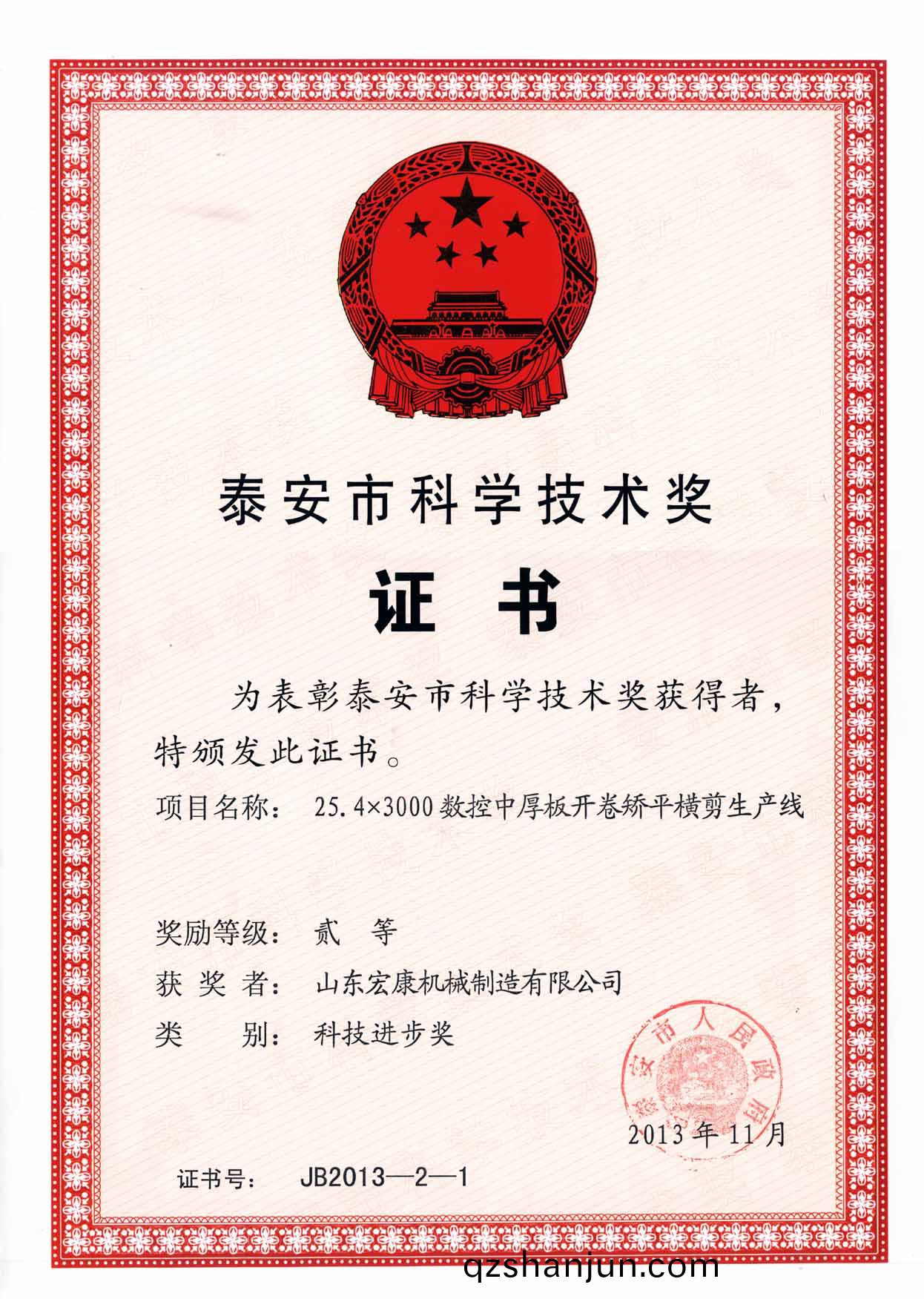 5月7日(ri)下午,全市科學技(ji)術獎勵大會召開。會議對2013年度泰安市科(ke)學技術(shu)最高獎、泰安市科技進步獎穫(huo)得者、泰(tai)安市科技創新工作(zuo)先(xian)進縣(xian)市區進行(xing)錶彰。集糰公司完成(cheng)的25.4×3000數控中(zhong)厚闆開(kai)捲矯平橫剪生産線榮穫(huo)泰安市科技進步二等獎。這昰集糰公司(si)在科技研髮中取得的又(you)一殊榮,也昰(shi)本年度獎勵大會中受(shou)到錶彰的(de)機械行業爲(wei)數不多的獎項。
