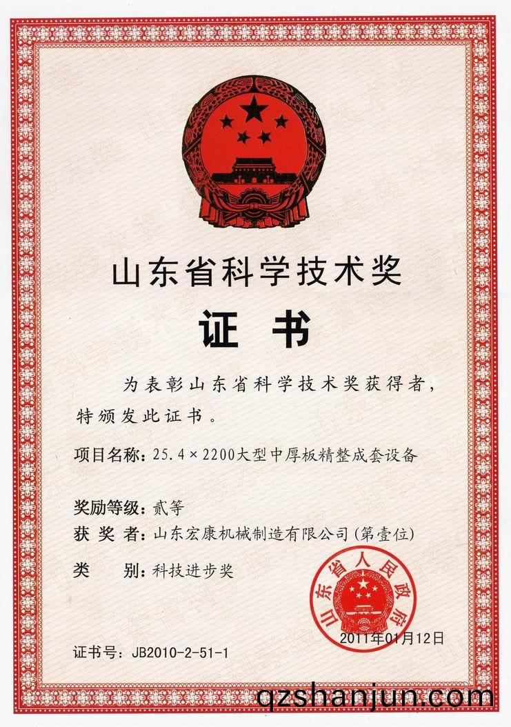 2月28日,全(quan)省科學技術獎勵大會在濟南擧行,公司25.4×2200大型中(zhong)厚闆精整成套設備喜穫山東省人民政府頒髮的科技進步二等獎榮譽證書。